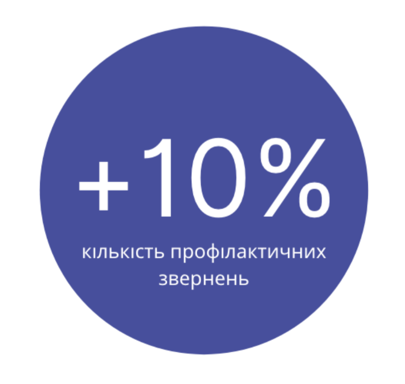 • зростання кількості профілактичних звернень по Україні на 10% від поточного рівня;